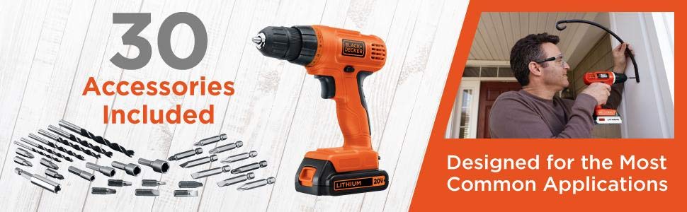 Like most Black and Decker ranges, this one is ideal for drilling through or screwing in wood, metal, and plastic. In addition, it can handle lighter metals. The 20-volt Li-ion battery holds an electric power charge for up to 18 months.